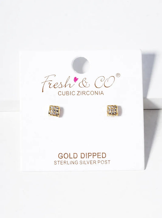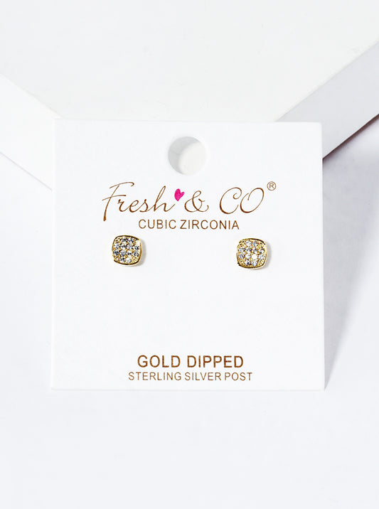 18K Gold Dipped CZ Pave 4mm Square Post Stud Earrings