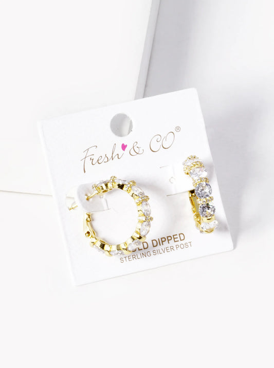 18k Gold Dipped CZ Pave 23mm Latch Back Hoop Earrings