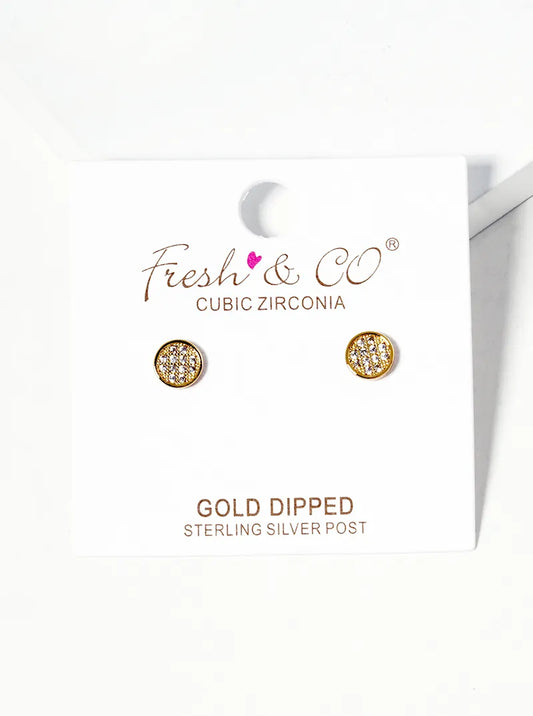 18k Gold Dipped CZ Pave 5mm Circle Post Stud Earrings