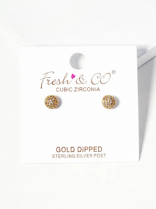 18k Gold Dipped CZ Pave 5mm Ball Post Stud Earrings