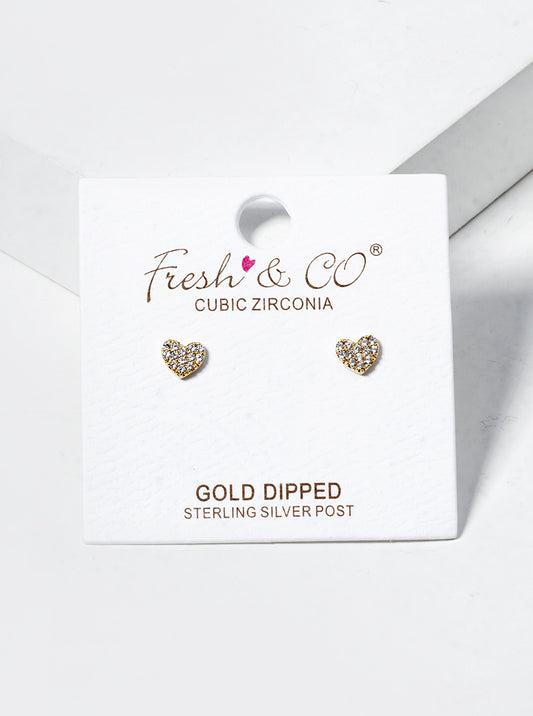 18k Gold Dipped CZ Pave 4mm Heart Post Stud Earrings