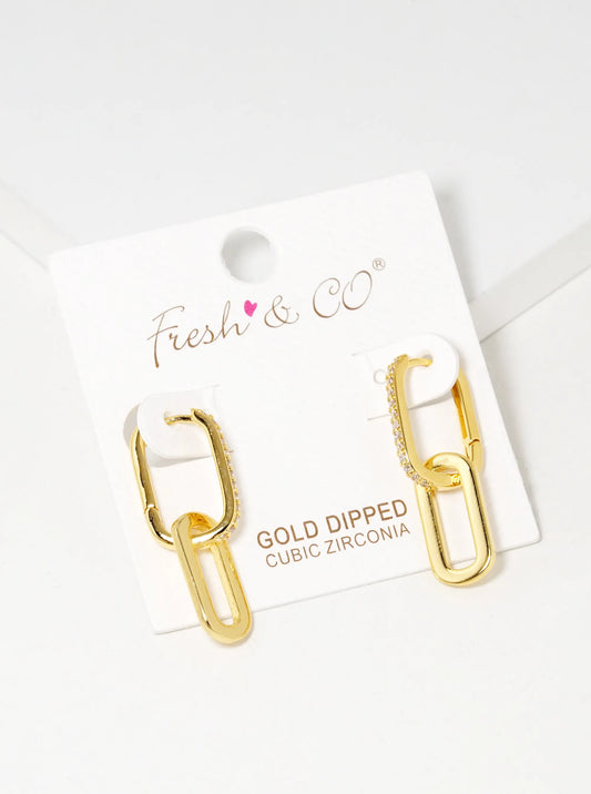 18k Gold Dipped CZ Pave Chain Huggie Hoop Earrings