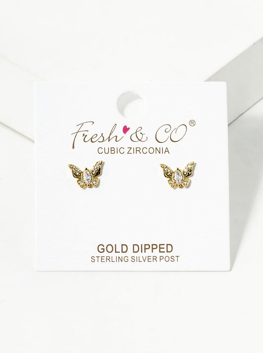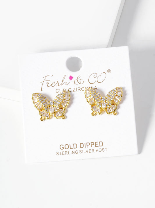 18K Gold Dipped CZ Pave Butterfly Stud Earrings