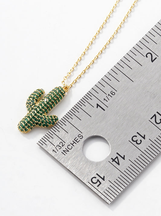 18k Gold Dipped CZ Pave Cactus Pendant Necklace