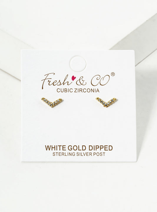 18k Gold Dipped CZ Pave Chevron Post Stud Earrings