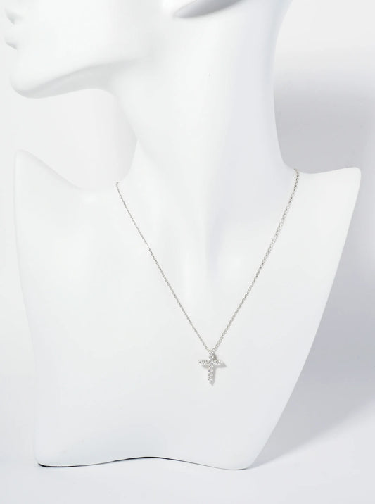 18K Gold Dipped CZ Pave Cross Pendant Delicate Necklace