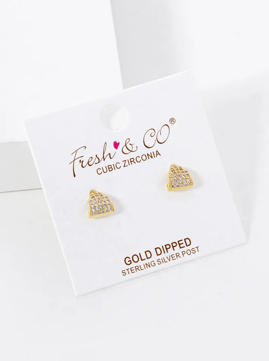 18k Gold Dipped CZ Pave Curved Triangle Stud Earrings