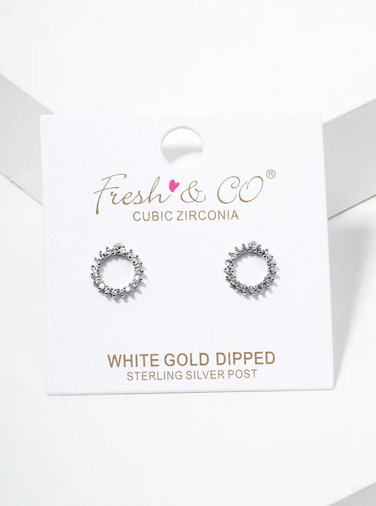 18K Gold Dipped CZ Pave Dainty Circle Post Stud Earrings
