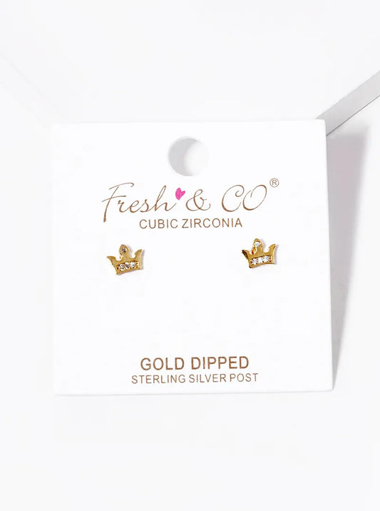 18k Gold Dipped CZ Pave Dainty Crown Stud Earrings
