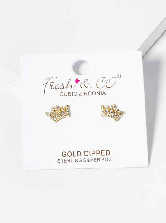 18k Gold Dipped CZ Pave Crown Stud Earrings