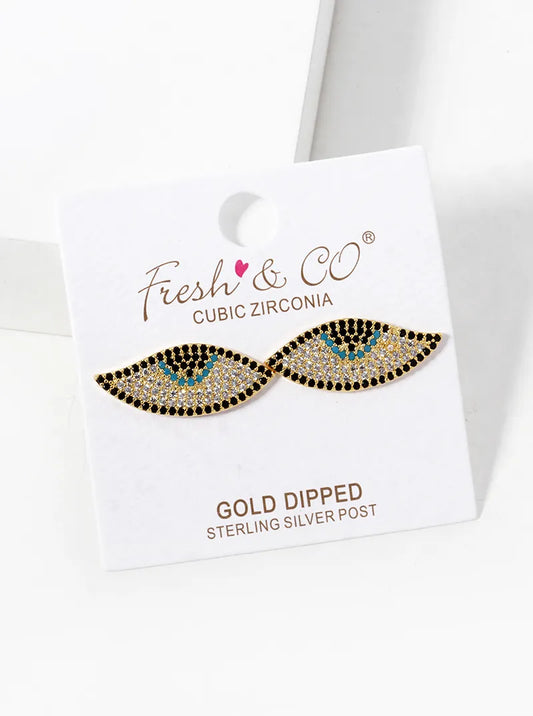 18k Gold Dipped CZ Pave Evil Eye Spiritual Stud Earrings