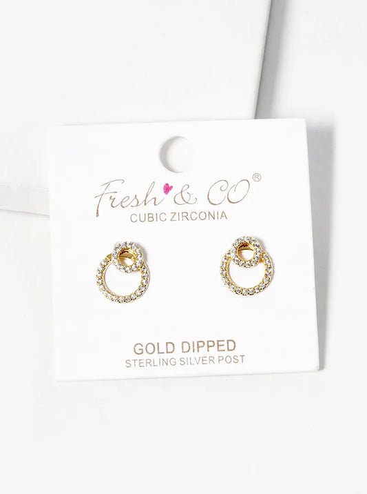 18k Gold Dipped CZ Pave Double Circle Post Stud Earrings