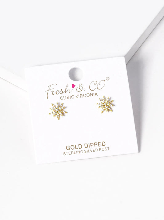 18k Gold Dipped CZ Pave Double Star Stud Earrings