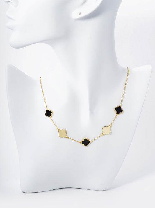 18K Gold Dipped 11mm Five Quatrefoil Station Necklace