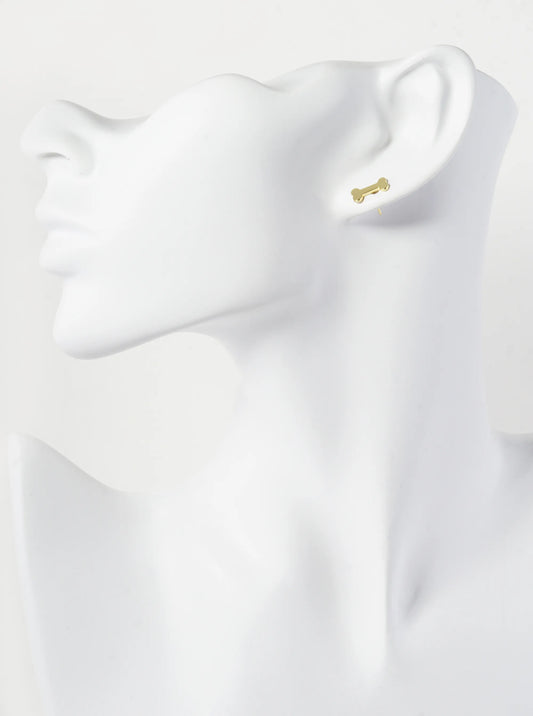 18K Gold Dipped 11mm Flat Dog Themed Bone Treats Stud Earrings