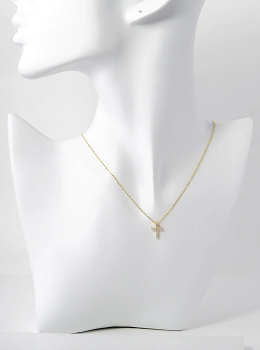 18K Gold Dipped 11mm Pave Cubic Zirconia Cross Pendant Necklace