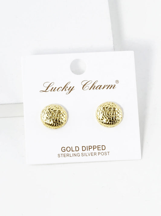 18K Gold Dipped 12mm Animal Pattern Textured Button Stud Earrings