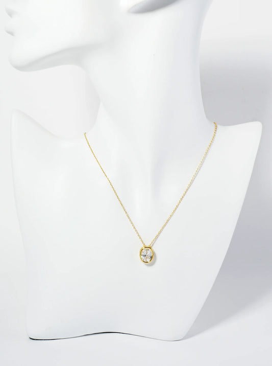 18K Gold Dipped 12mm Bezel Set CZ Oval Pendant Necklace