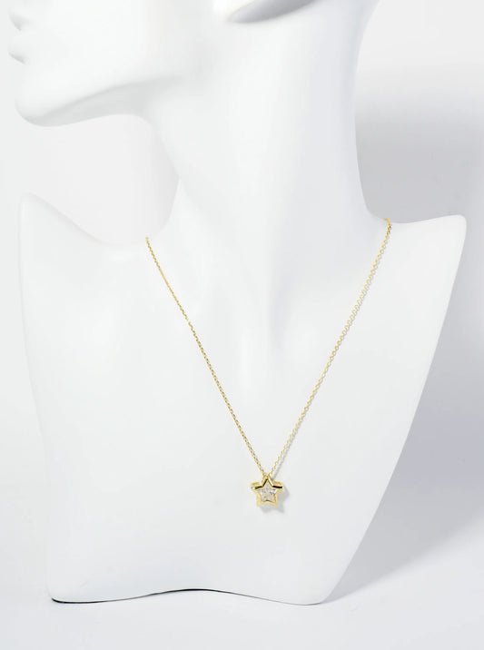 18K Gold Dipped 12mm Bezel Set CZ Star Pendant Necklace