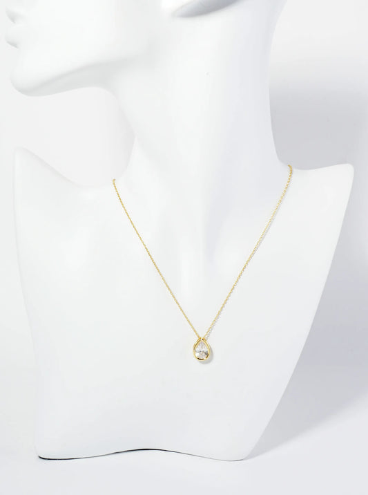 18K Gold Dipped 12mm Bezel Set CZ Teardrop Pendant Necklace