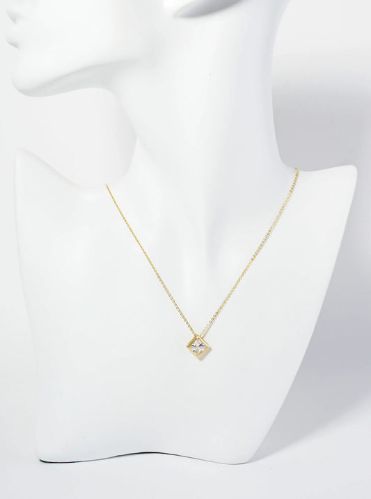 18K Gold Dipped 12mm Bezel Set Rhombus CZ Pendant Necklace