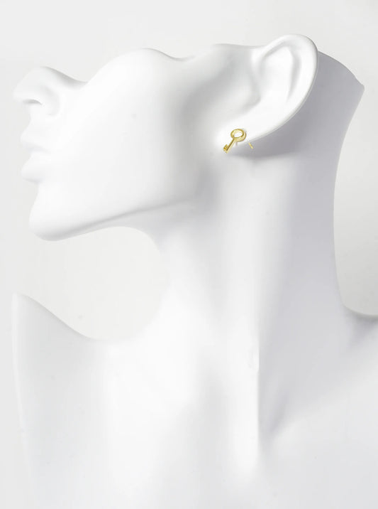 18K Gold Dipped 12mm Brass Key Sterling Silver Post Stud Earrings
