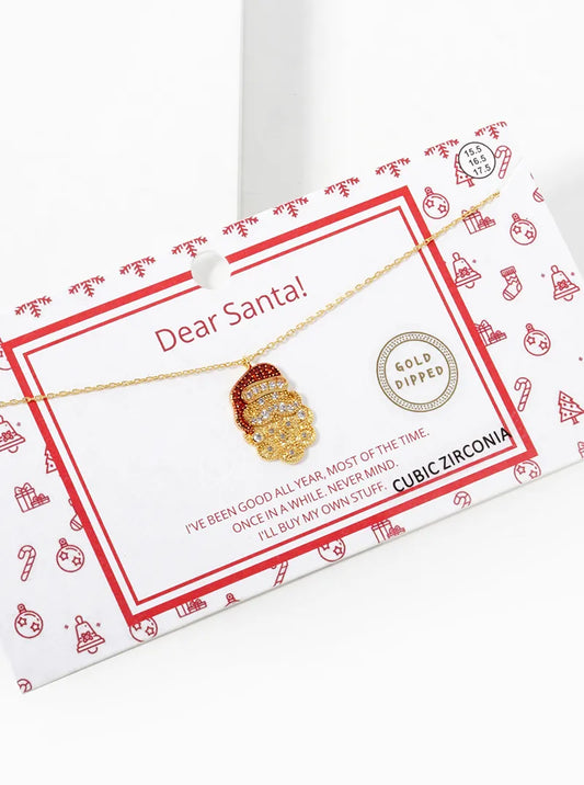 18K Gold Dipped CZ Pave Santa Claus Pendant Christmas Necklace