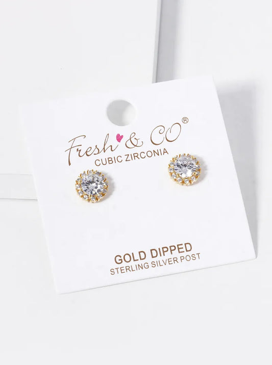 18k Gold Dipped CZ Pave Round Stud Earrings
