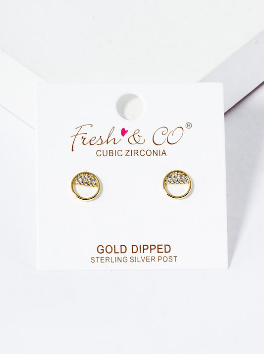 18k Gold Dipped CZ Pave Round Post Stud Earrings