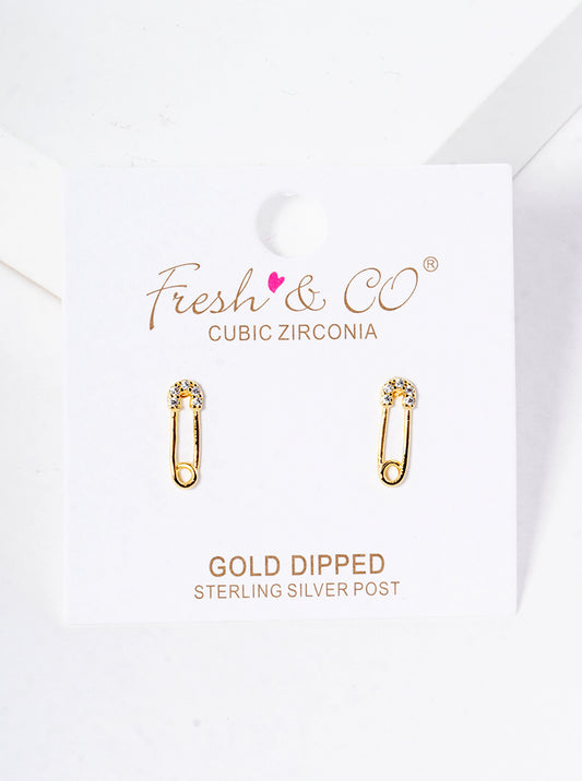 18k Gold Dipped CZ Pave Safety Pin Stud Earrings