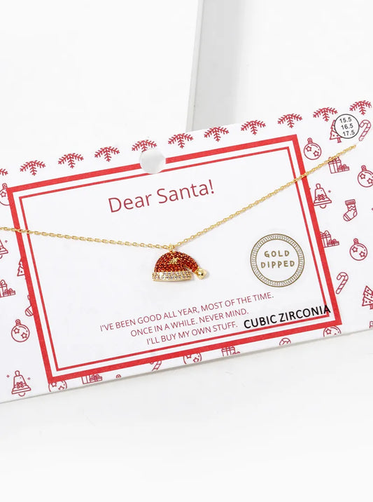 18K Gold Dipped CZ Pave Santa Claus Christmas Hat Pendant Necklace