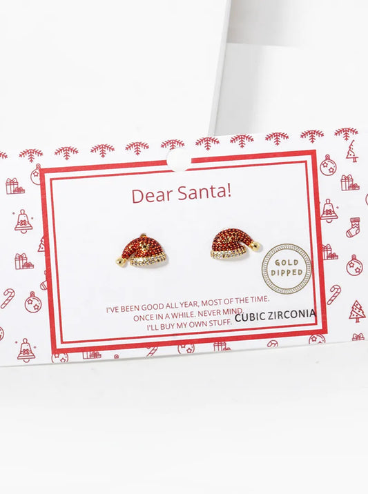 18K Gold Dipped CZ Pave Santa Claus Christmas Hat Stud Earrings