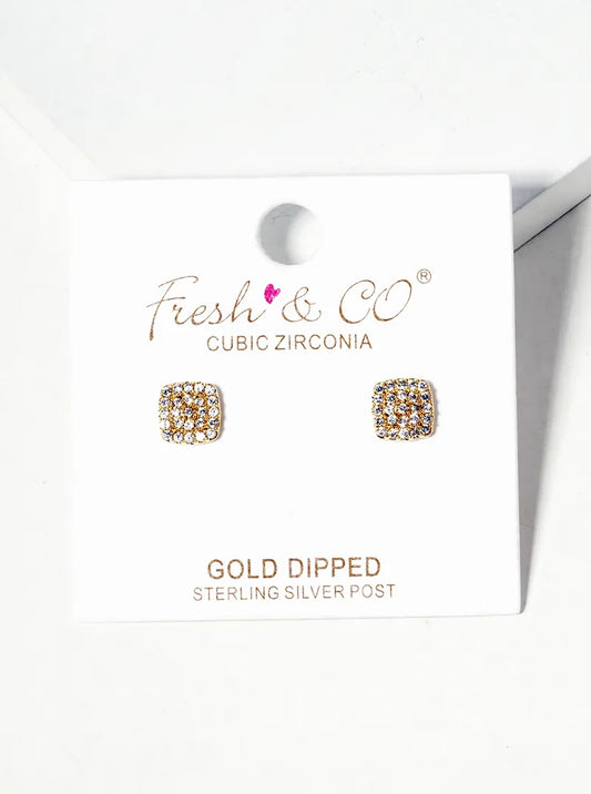 18k Gold Dipped CZ Pave Rounded Square Post Stud Earrings