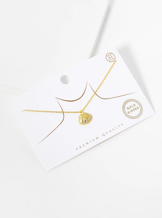 18k Gold Dipped CZ Pave Seashell Pendant Necklace
