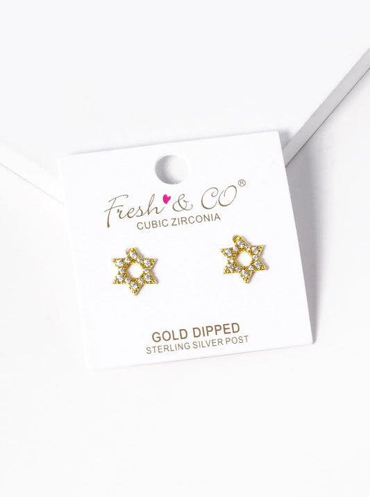 18k Gold Dipped CZ Pave Star Of David Stud Earrings
