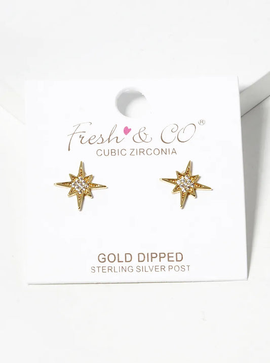 18K Gold Dipped CZ Pave Starburst Post Stud Earrings