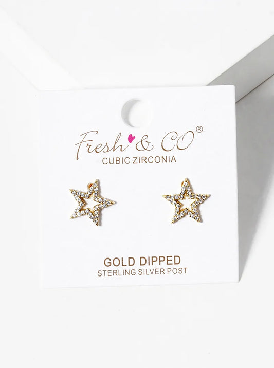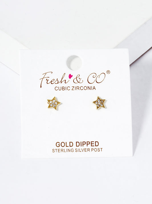 18K Gold Dipped CZ Pave Star Post Stud Earrings