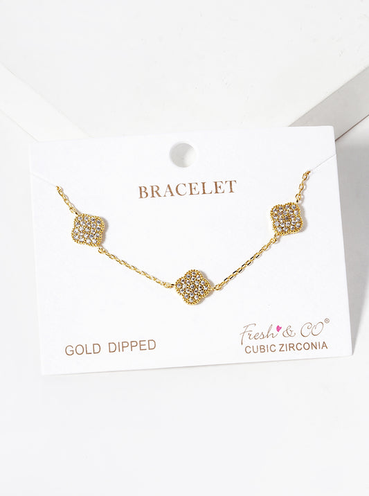 18k Gold Dipped CZ Pave Three Quatrefoil Bracelet