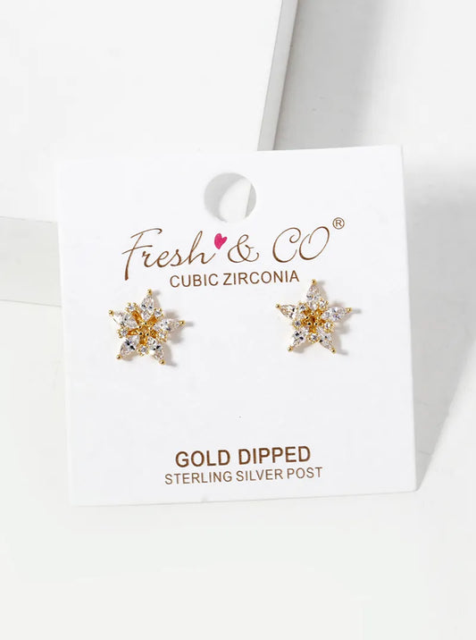 18k Gold Dipped CZ Pave Starburst Post Stud Earrings