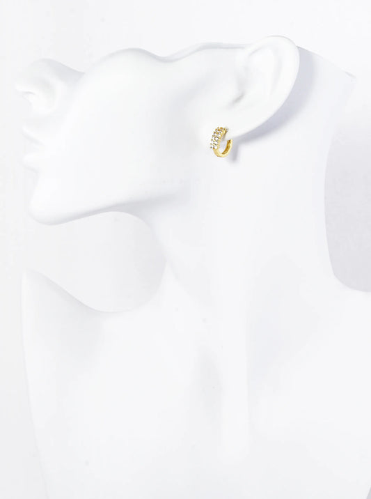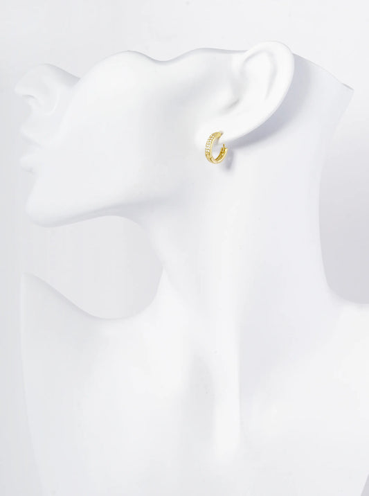 18K Gold Dipped Double Row Pave Set CZ 12mm Brass Huggie Hoop Earrings
