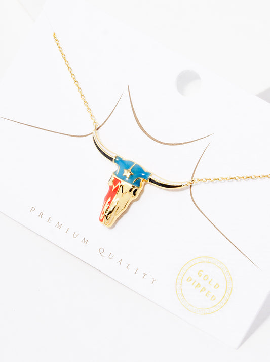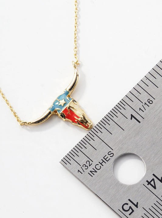 18K Gold Dipped Enamel Filled Bull Head Pendant Necklace