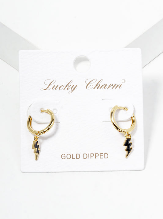 18K Gold Dipped Enamel Filled Lightning Drop 10mm Huggie Hoop Earrings