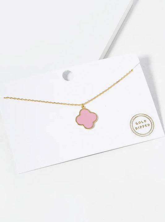 18k Gold Dipped Enamel Filled Quatrefoil Pendant Necklace