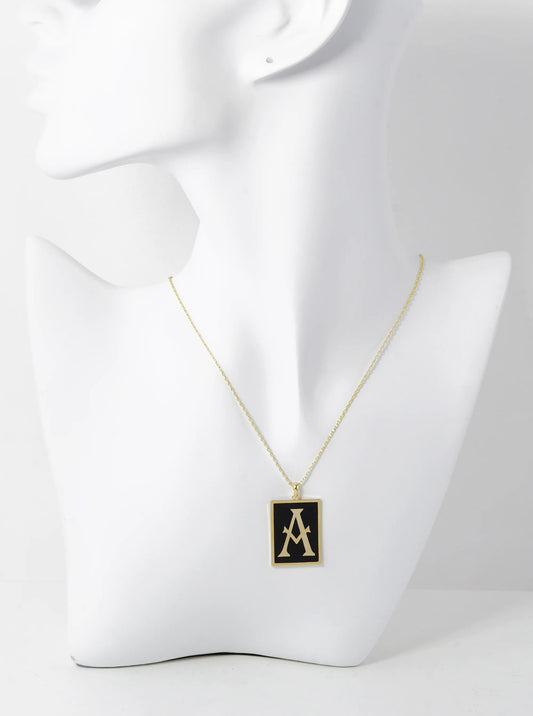 18K Gold Dipped Enamel Filled Rectangular Initial Pendant Necklace