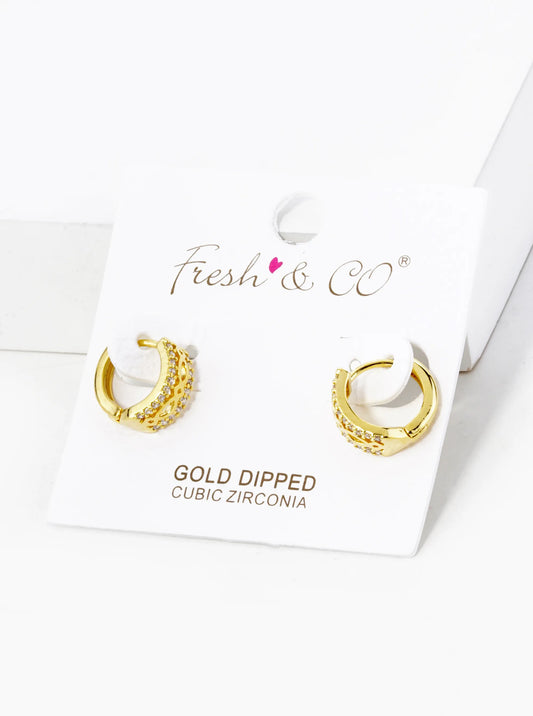 18K Gold Dipped Filigree Micro Pave Set Cubic Zirconia 12mm Huggie Hoop Earrings