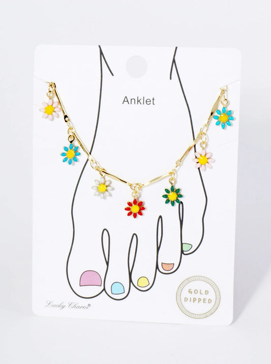 18K Gold Dipped Enamel Flower Charms Brass Chain Anklet