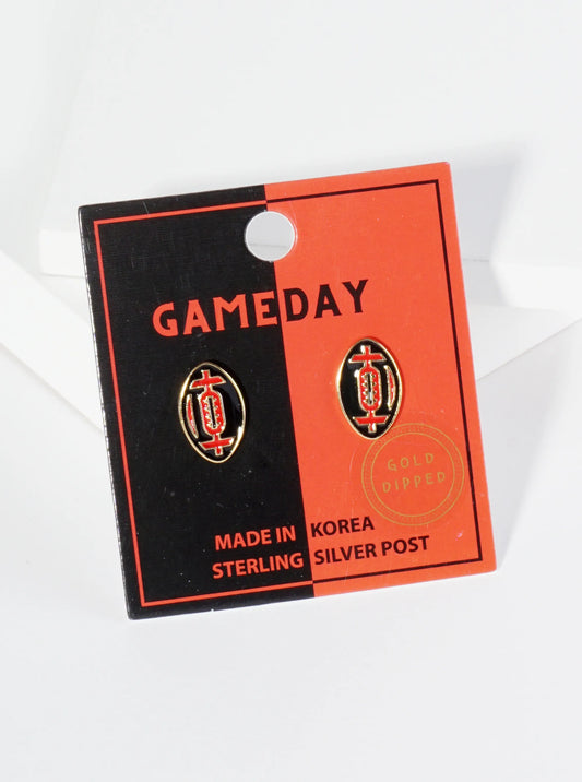 18K Gold Dipped Enamel Football Ball Game Day Stud Earrings