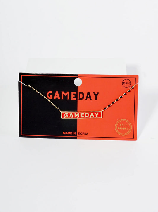 18K Gold Dipped Enamel Game Day Pendant Glass Beaded Chain Necklace