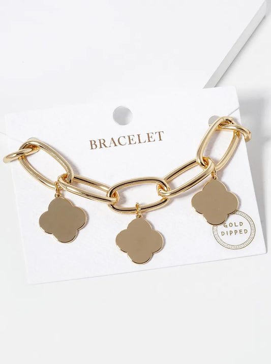 18k Gold Dipped Five Quatrefoil Charms Chain Bracelet