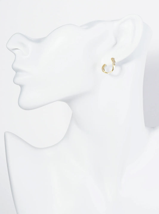 18K Gold Dipped Front Facing 16mm Cubic Zirconia Small Hoop Earrings